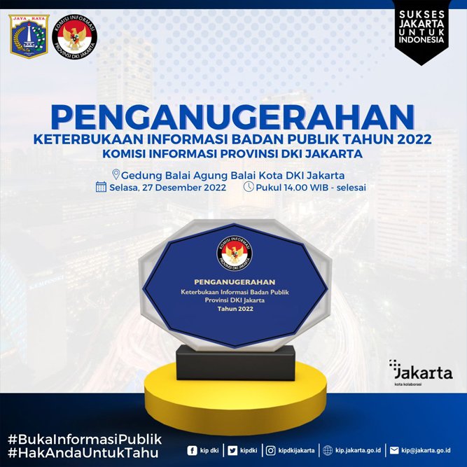 JAKARTA - Komisi Informasi Provinsi DKI Jakarta akan menggelar Penganugerahan Keterbukaan Informasi Publik Badan Publik Tahun 2022 pada Selasa 27 Desember 2022 di Balai Agung, Balaikota, DKI Jakarta.…